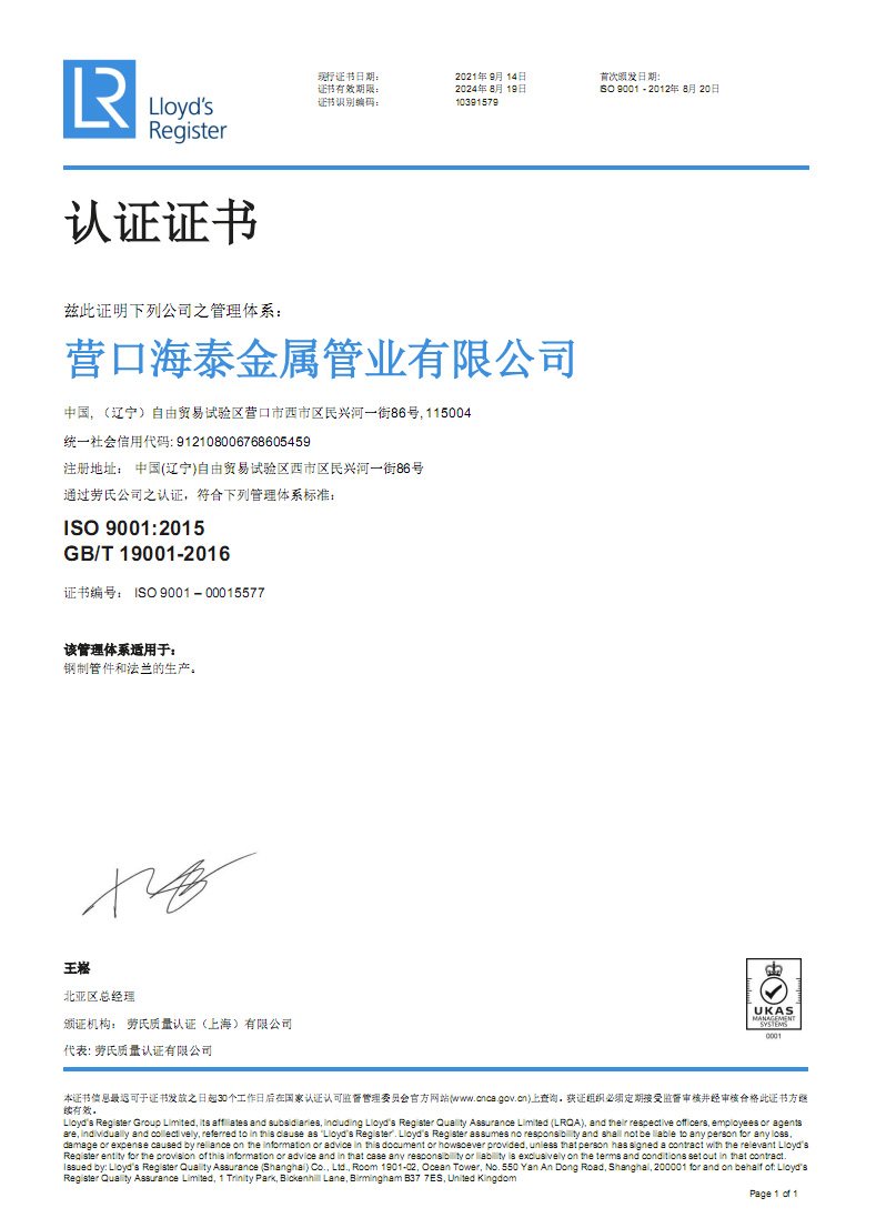 營口海泰金屬管業有限公司成立于2001年,是專業生產管道配件的制造經營企業。公司占地面積兩萬五千平方米,坐落于中國遼寧省港口城市營口。營口一市兩港(營口港、鲅魚圈港),東臨大連港四季通航,陸路運輸四通八達交通便利。